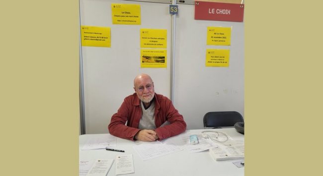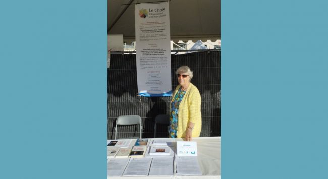 J’étais seul à représenter Le Choix et 16 personnes se sont entretenues avec moi. Parmi lesquelles, 10 ont consenti à laisser leurs coordonnées. Ne veulent pas être importunées, disent qu’elles nous contacteront, acceptent volontiers le flyer de l’association. Deux nouvelles cotisations ont été enregistrées. Beaucoup de gens ignorent tout des Directives anticipées. La présentation de…