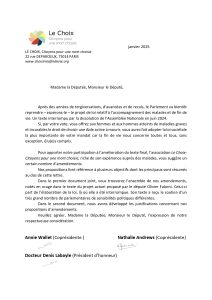 Alors que la reprise des débats sur la loi fin de vie à l’assemblée est annoncé pour le printemps, Le Choix a envoyé en janvier 2025 aux parlementaires une lettre accompagnée des amendements.