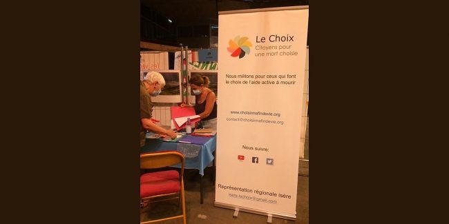 La permanence d’Isère Le Choix au forum s’est déroulée de façon très satisfaisante malgré les contraintes liées au passe sanitaire. Nous avons remarqué, par rapport aux années précédentes, un accroissement très net de l’intérêt du public pour la fin de vie, se traduisant par davantage de visites sur le stand et de contacts, des visiteurs…